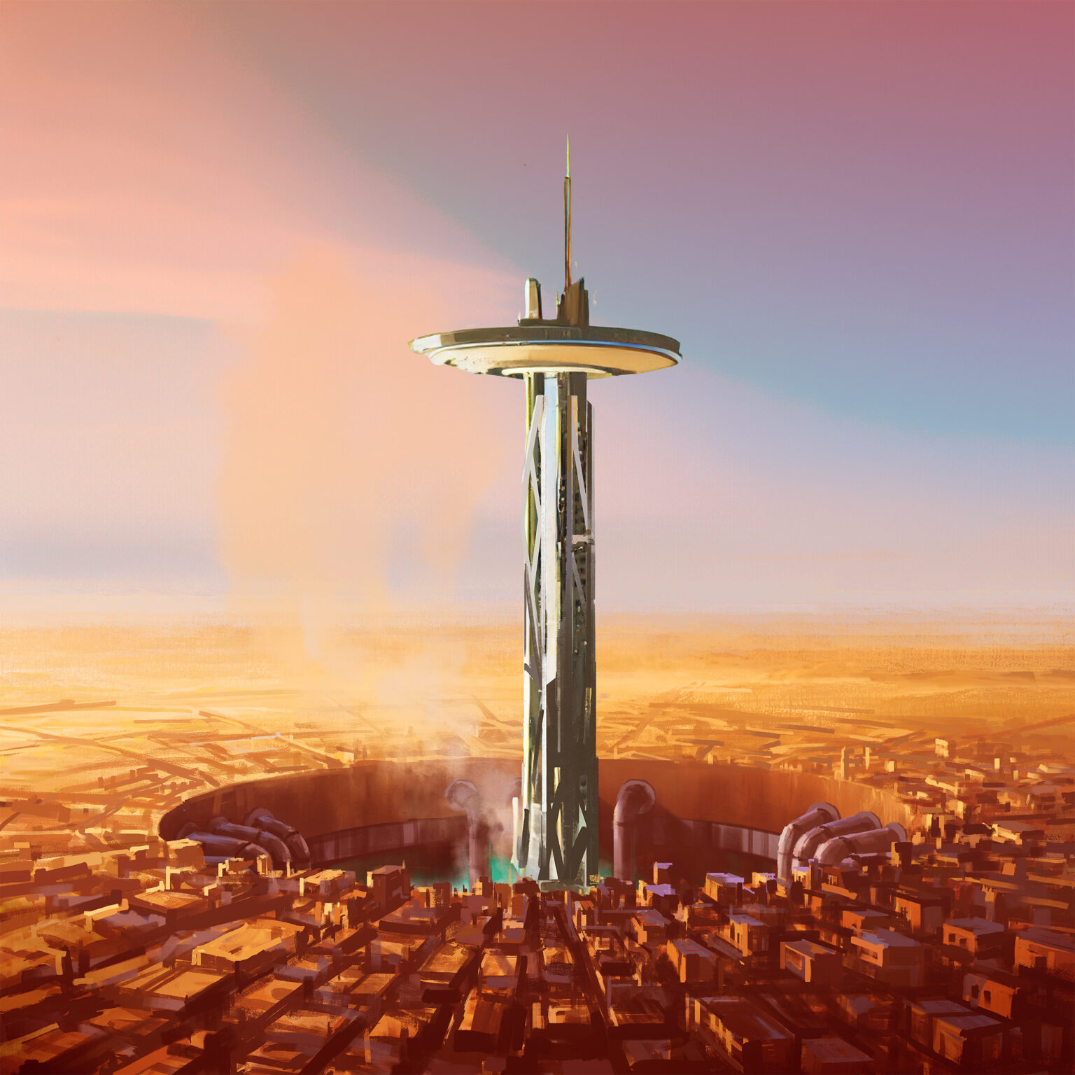The very first of the massive terraforming stations installed on Mars. These skyscraper-sized machines were transported from Earth in one piece and bore deep into the planet. They utilize the geothermal energy of the planet's iron-rich outer core to generate an artificial magnetosphere and release trapped subsurface water and fluorocarbons into the atmosphere. The electricity the stations generate as a byproduct of the terraforming process is used to power the cities and settlements around the planet.