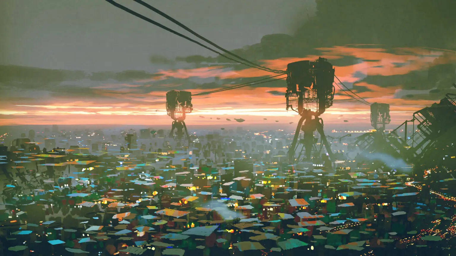 Built from derelict drop pods, shipping containers, and scrap, the shanties are the lifeblood of Marsport where more than half of the six million residents carve out lives without the basic comforts of free air, free water, and the safety afforded by the domes.